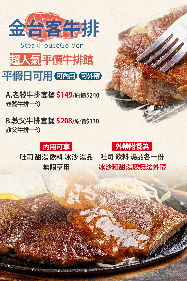 超人氣平價牛排館——【金台客牛排】,重磅登場GOMAJI囉!專業手法,為庶民美食-平價牛排注入全新的生命力,揭開「排餐饗宴」的全新篇章!