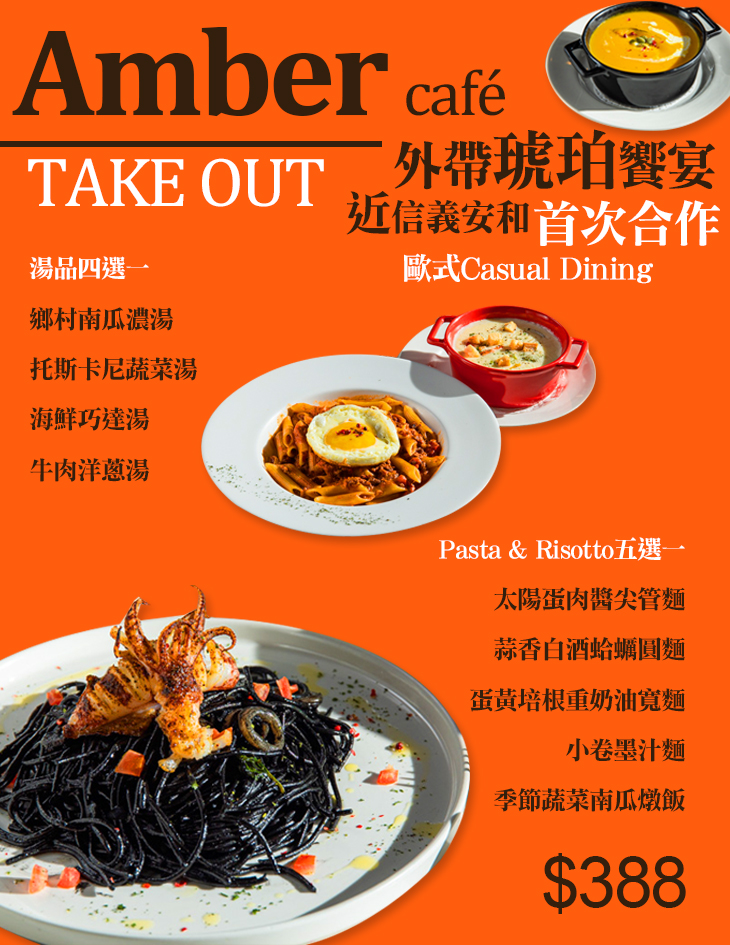 近捷運信義安和站!Amber Café是一間複合式餐酒館,提供義式、法式、歐式等異國料理,主廚以高水準且自然的料理手法,用心準備餐點,不只美味更兼顧視覺美感,希望每位顧客都能吃得幸福滿足 ~ 兩層樓的用餐空間,寬敞又舒適,裝潢優雅絕美,在柔和燈光的照映下,顯得格外浪漫、愜意。如果您正在找一間適合情侶約會、好友聚會、公司聚餐的餐廳,那非常推薦您來Amber Café,相信能帶給您一段美好愉悅的用餐"心"感受唷!♥