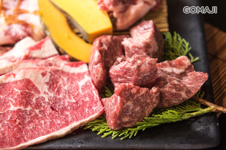 伊比利梅花豬為老饕最喜愛的部位,油花完美的分佈在肉質之中,與霜降松阪豬、黑毛豬梅花及黑毛豬五花相搭上桌,放在烤網上慢慢烘烤,軟嫩細緻、豐潤不膩,而另一個受歡迎的霜降松阪豬,則是嫩中帶脆,越咀嚼香氣越豐盛,這盤多重層次的口感讓您一次滿足。