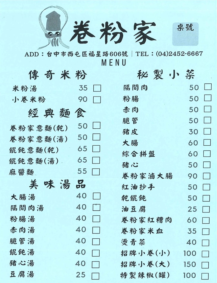 〝來自台南的好味道!經典傳統小吃,在台中也能吃得到!〞近福星立體停車場、逢甲商圈!料理以米粉、米粉湯、麵食、湯品、小菜等古早味特色美食為主的【卷粉家 小卷米粉】,舒適、潔淨的用餐環境,營業時間一到,濃濃的香氣從裡到外陣陣飄出 ~ 每日新鮮備料,搭配多年經驗累積的好手藝,讓台灣傳統美食,無論口感還是香氣,都做得十分到味,令人討喜!