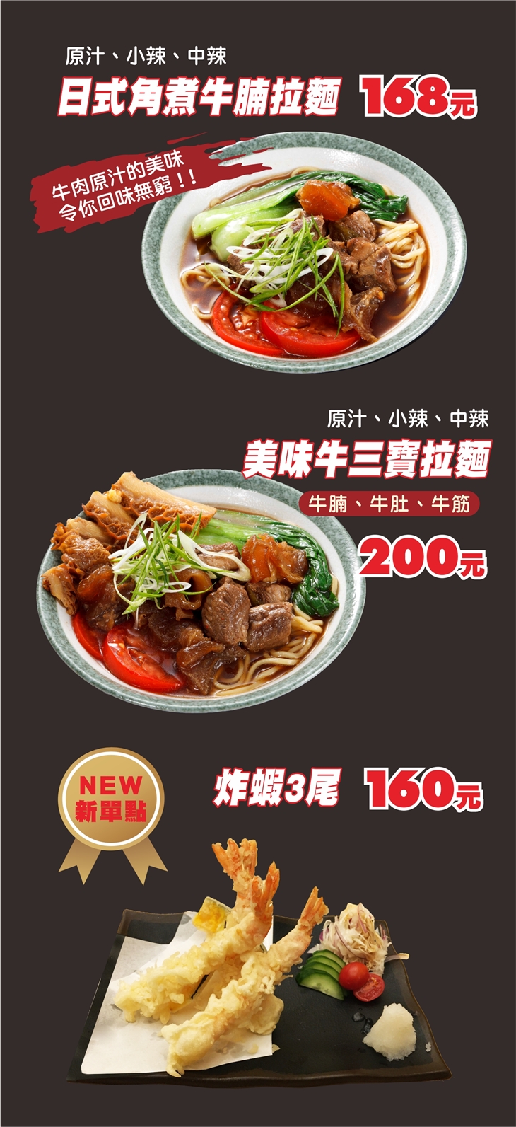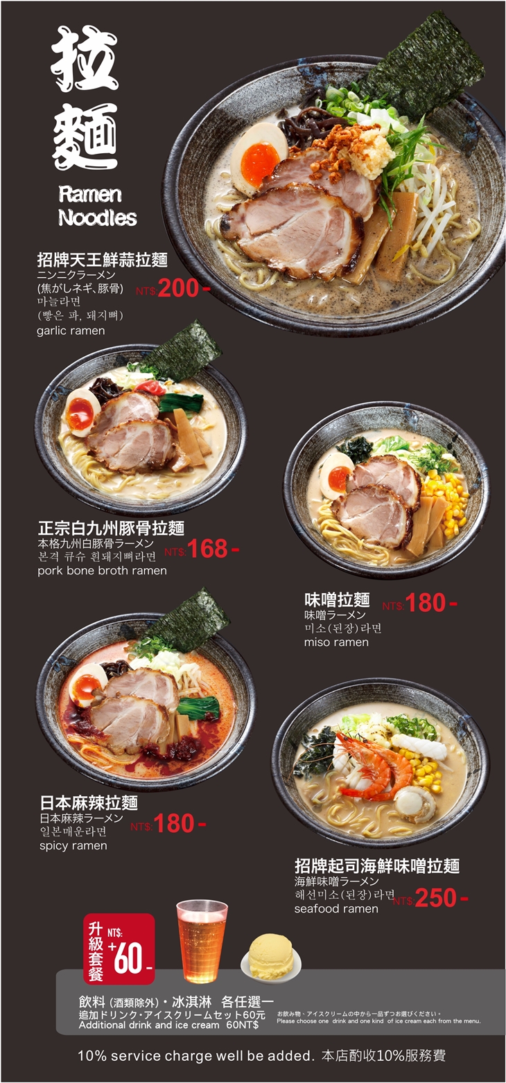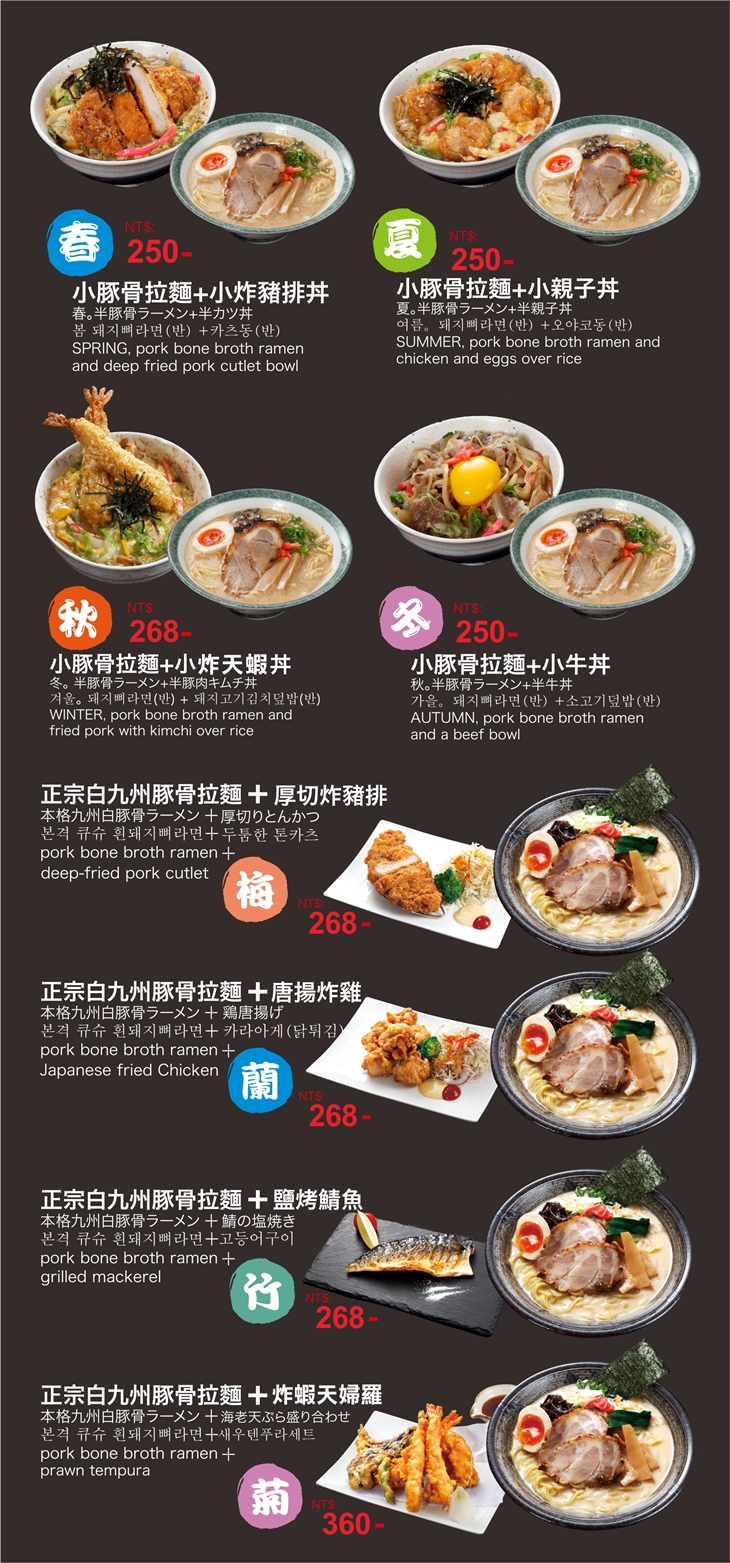 超人氣美食,麻吉錯過怎麼行!嚴選各式新鮮食材,搭配師傅精準火候料理與嫻熟好手藝,為老饕您獻上道道色香味俱全的佳餚饗宴!豬大骨、豬背骨,和精選蔬菜費時熬煮八小時以上的拉麵湯頭,濃郁香醇,配上手作麵條與各式經典日式小菜,專業料理,讓您感受道地日本濃濃飲食文化風情!