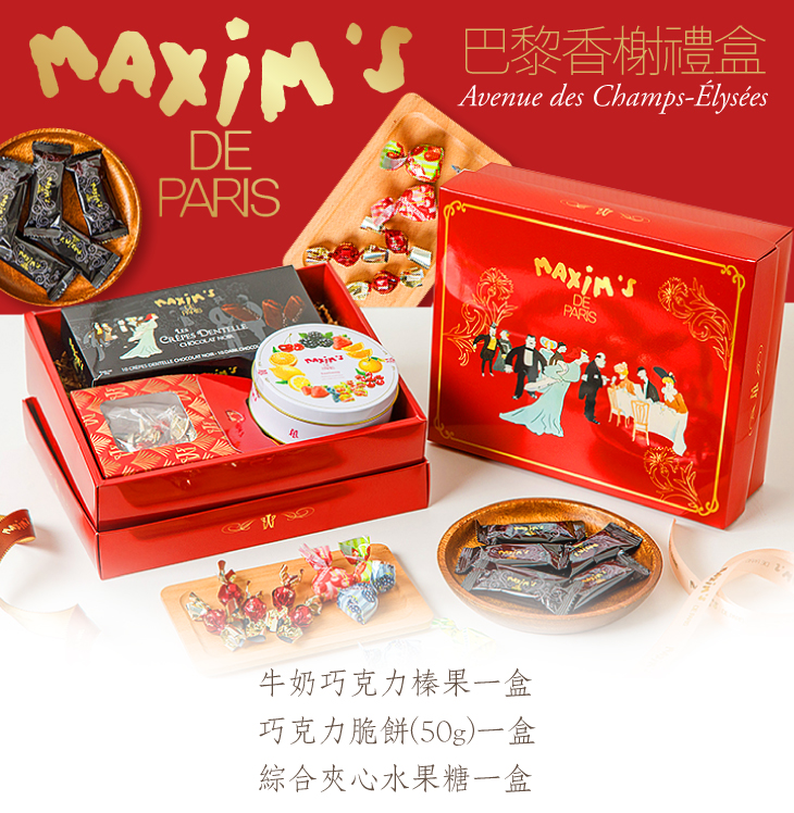 身為巴黎最重要的新藝術裝飾聖地,Maxim’s 對於裝飾有獨特的堅持。所有的禮盒,皆以鮮靈的色彩搭配新藝術風格設計再現那個繽紛、快樂、充滿希望的時代風貌。【巴黎香榭禮盒】宛如一艘方舟,帶懷舊旅人進入巴黎嘉年華,一起體驗浪漫優雅、古典時尚的法式風情。