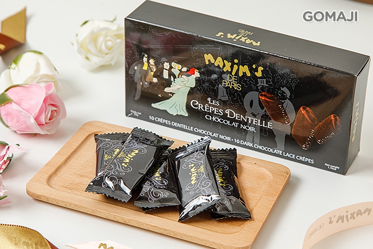 別具一格的Maxim's法式巧克力脆餅,以精湛的烘焙技術、繁瑣細膩的工序製作出細緻的口感,薄脆香的法式脆餅外層裹上香濃的黑巧克力,濃郁香醇,相當扣人心弦。