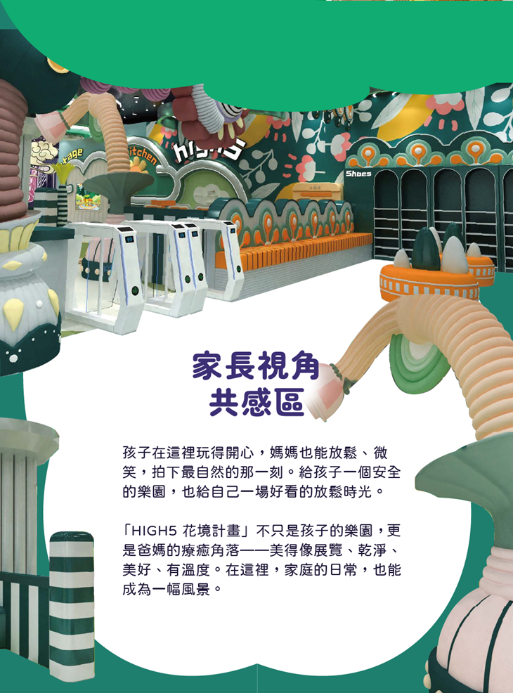 由建築樂園團隊全新打造的【HIGH5親子樂園】,以「花境 × 美學 × STEAM」為設計核心,結合自然色調與展覽級空間規劃,打造最夢幻的沉浸式親子樂園。