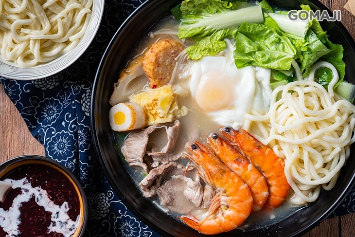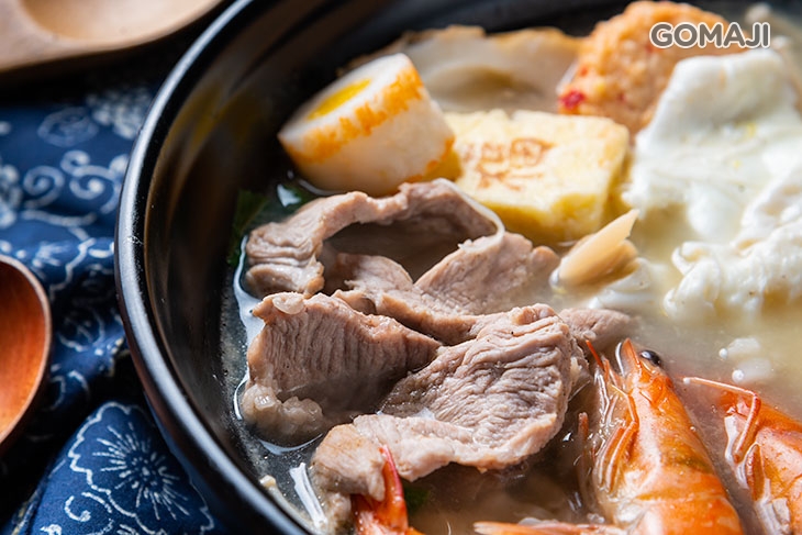 海陸雙拼的豪華鍋燒湯底,使用嚴選的新鮮海鮮、嫩肉、時蔬⋯等天然食材,佐以各樣火鍋料小品細火慢燉,將海鮮與嫩肉的精髓美味完美精燉至湯水之中,清香甘甜的底蘊,讓這湯頭入口後便是陣陣醇厚、雋永的享受,讓您由體內開始溫暖,滿足飢腸轆轆的胃腸,洗滌疲勞的身心,無疑是幸福的滋味~