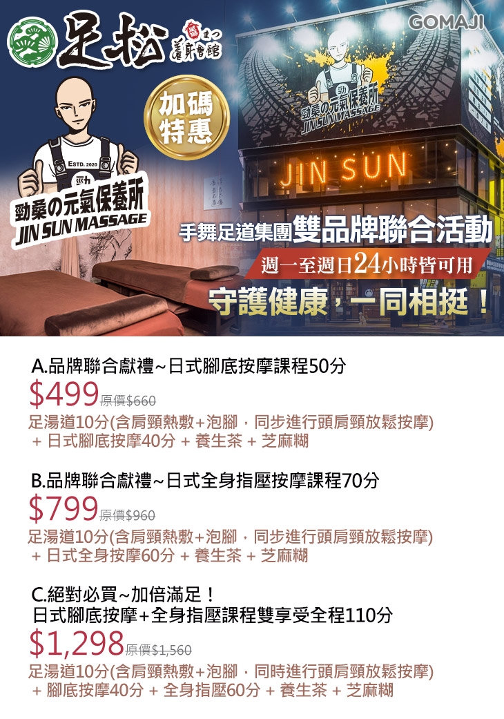 ◆手舞足道集團品牌聯合活動(足松養身會館、JIN SUN 勁桑の元気保養所)◆