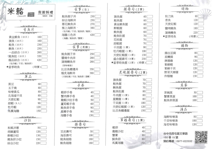 菜色內容依季節時令調整,實際菜色、價目依現場提供為主