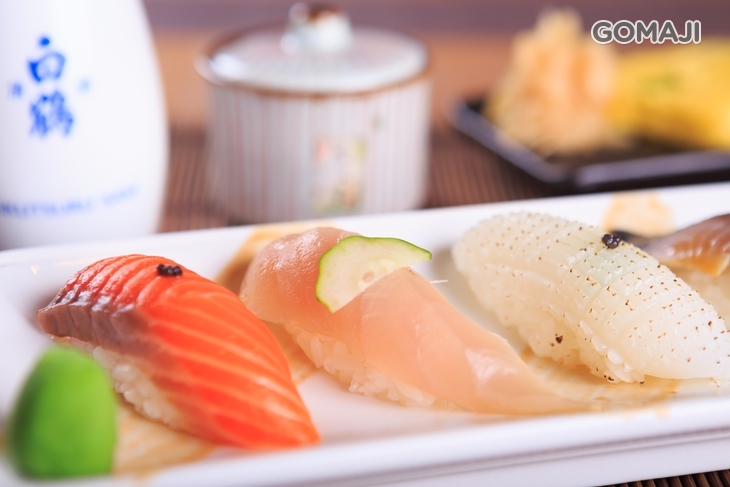 除了丼飯,還有老饕最愛的盛合握壽司,一貫一貫陳列於盤上的綜合握壽司,魚肉皆來自店家每日新鮮挑選而來的極品美味!帶點微微酸甜的醋飯與上頭鮮美迷人的時令鮮魚搭配起來,堪稱一絕!單吃或佐點些許日式醬油提味品嚐,這幸福來的正是時候啊!