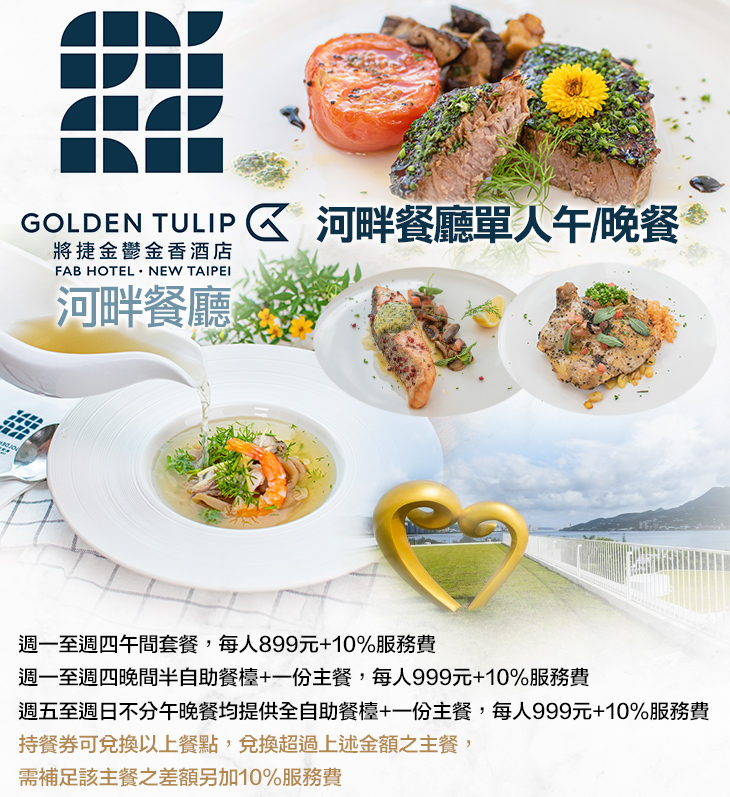 河畔餐廳單人午/晚餐(可擇一時段兌換使用,詳請請見兌換說明)