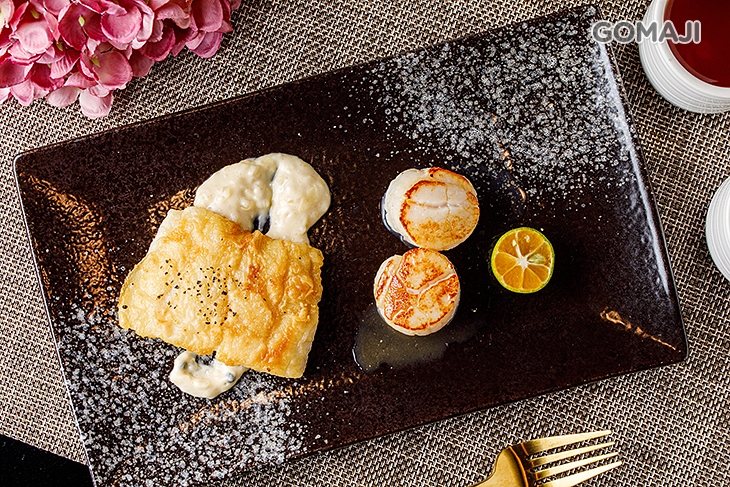 特選北海道頂級干貝來製作,入料理台文火香煎,干貝外表微微焦脆,入口肥美的肉質,更散發濃濃鮮香與清甜 ~ 再搭配些許時令鮮蔬點綴品嚐,美味依舊、口感更佳!