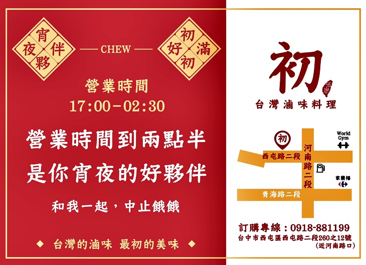 來到台中西屯區,沒吃過這間,別說你 / 妳有做足功課喲!距逢甲商圈,車程5分鐘、步行10分鐘的【初台灣滷味料理】,在西屯路二段這帶擁有超高人氣!每每傍晚營業時間一到,客人總是一個接著一個、絡繹不絕上前!