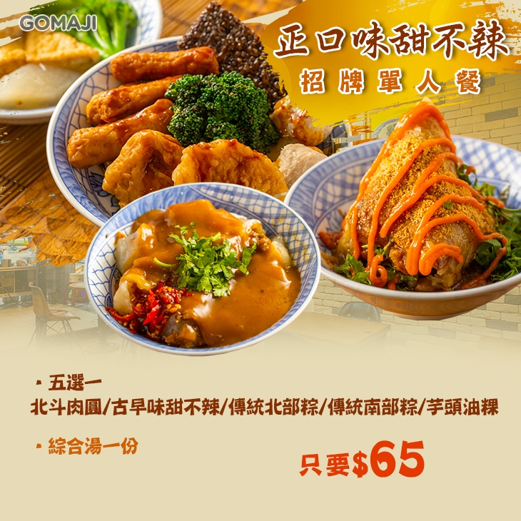 北斗肉圓/古早味甜不辣/傳統北部粽/傳統南部粽/芋頭油粿 五選一 + 綜合湯一份