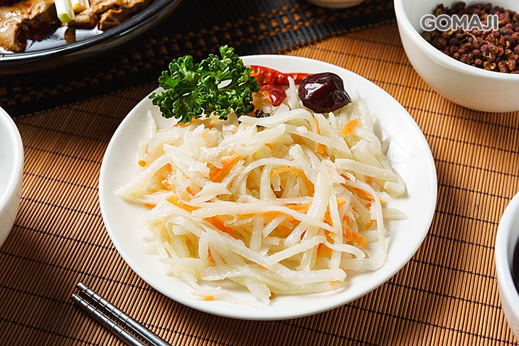 清爽脆口的土豆絲,佐以酸爽的醋醬汁涼拌,又酸又脆的口感實在涮嘴到不行!土豆絲淡淡的甘甜,和特製的醋酸醬交融在一塊,在齒唇間留下令人難忘的餘韻!