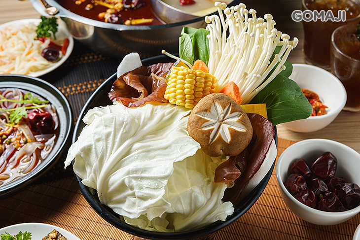 加入紅棗、枸杞精燉而成的養生湯頭,清甜溫潤的風味,和口味刺激的麻辣湯底拼在一塊製成一份豪華的鴛鴦鍋,強烈的對比卻形成了口感上絕妙的配搭,一邊是麻辣湯底涮出來的嫩肉,香辣夠味,十分帶勁,一邊又是養生湯頭燉煮出來的蔬菜,甘甜爽口,十分療癒,加在一起品嚐,豐富的層次口感,讓人愛不釋口!