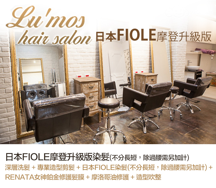 〈深層洗髮 + 專業造型剪髮 + 日本FIOLE染髮(不分長短,除過腰需另加計) + RENATA女神鉑金修護髮膜 + 摩洛哥油修護 + 造型吹整〉