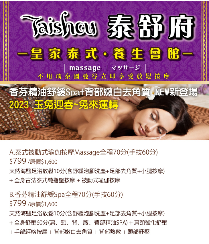 【泰舒府-皇家泰式‧養生會館】感謝麻吉們熱烈搶購,已全數賣光光。