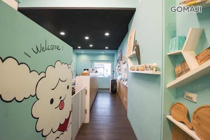 ▼內用位置於「媽媽打打手工披薩」座位區,裡面販賣許多可愛的文創小物,讓您邊吃美味港點的同時,還能被精美的圖畫療癒~