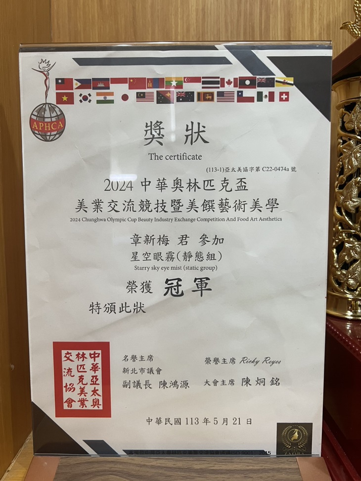 〈個人理想美感溝通建議 + 客製化造型設計 + 眼周肌膚消毒清潔 + 眼周肌膚鎮定舒緩 + 半永久星空眼霧美瞳眼線定妝上色定型(雙眼上方內眼線) + 眼型上色定型 + 眼部冰晶舒緩修護保養〉