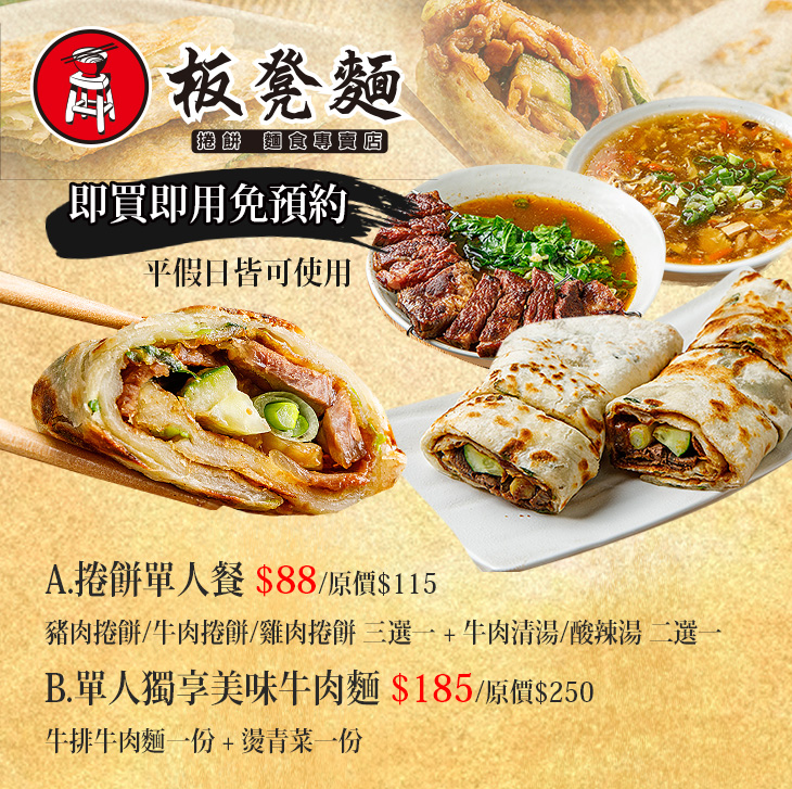 超有人氣的牛肉捲餅,熱騰騰獻上給您!外層稍帶焦酥,內層則層層彈嫩的捲餅皮,緊緊包覆著脆綠青蔥、鮮嫩牛等滿滿佐料,大口咬下,各種美味在味蕾互相交疊,唇齒間充滿豐盈的餅香、蔥香與肉甜,令人滿足的口感,必嚐無疑!