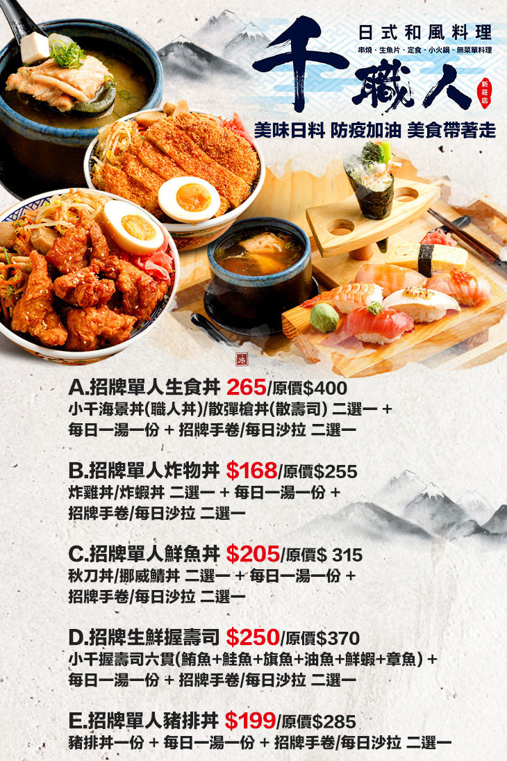 激優高評價!超人氣日式平價美味,夠麻吉小編揪您來體驗!【千職人 日本料理】與夠麻吉攜手推出超值優惠!乾淨、舒適的用餐環境,餐點提供以日式家常料理為主,丼飯、刺身、串燒、味噌湯等,道道美味、道道推薦!每日新鮮備料,以專業不失態度的烹飪精神製作眼前即將出餐的料理,讓老饕印象深刻!「平價美味」,值得您揪伴來店品味嚐鮮!