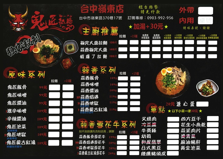【鬼匠拉麵(嶺東店)】感謝麻吉們熱烈搶購,已全數賣光光。