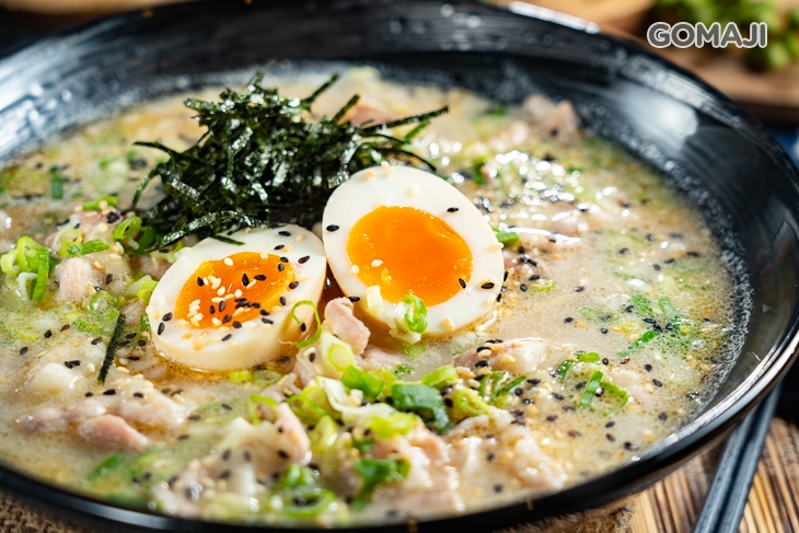 使用特選食材精心熬成的豚骨湯,乳白色的湯頭,香鹹之中帶著一絲奶香,每一口湯頭和麵條都攜帶著關於幸福的美味,香濃馥郁,佐上Q彈麵條、鮮嫩叉燒、溏心蛋等配料,口口都令人著迷,是人氣長年不衰的熱門口味!