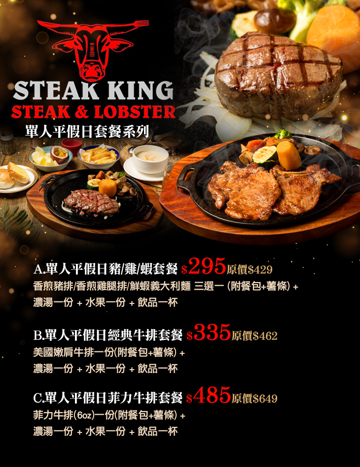 肉肉控,這檔錯過,想一嚐超值美味可能就要等下次囉!這間位在高雄無人不知無人不曉的【STEAK KING】,正如其名 - 牛排之王,就是要給您最實實在在的牛肉美味啦!