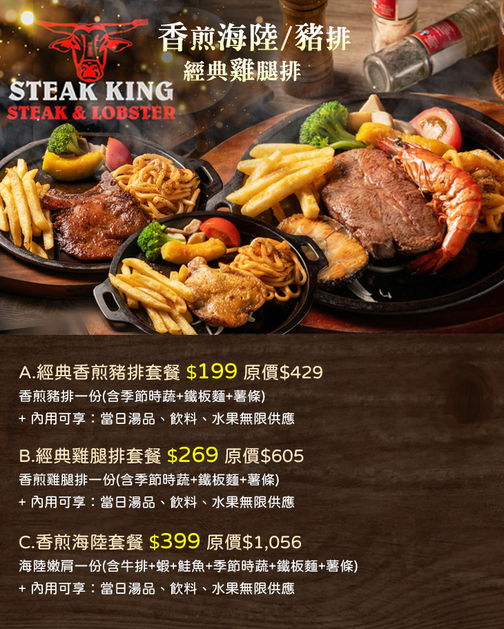 肉肉控,這檔錯過,想一嚐超值美味可能就要等下次囉!這間位在高雄無人不知無人不曉的【STEAK KING】,正如其名 - 牛排之王,就是要給您最實實在在的牛肉美味啦!