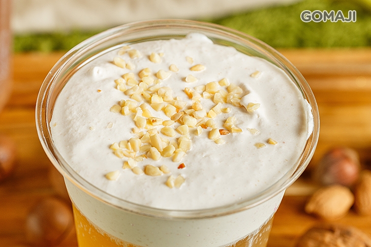看似平凡簡單的四季春茶,散發著自然回甘的茶香,更襯托出茶葉迷人之處,搭配以黃金比例調配的堅果奶蓋,雪白綿密的口感夾帶了堅果獨有的香,無論是在視覺或味覺上的享受,皆令人陶醉其中。