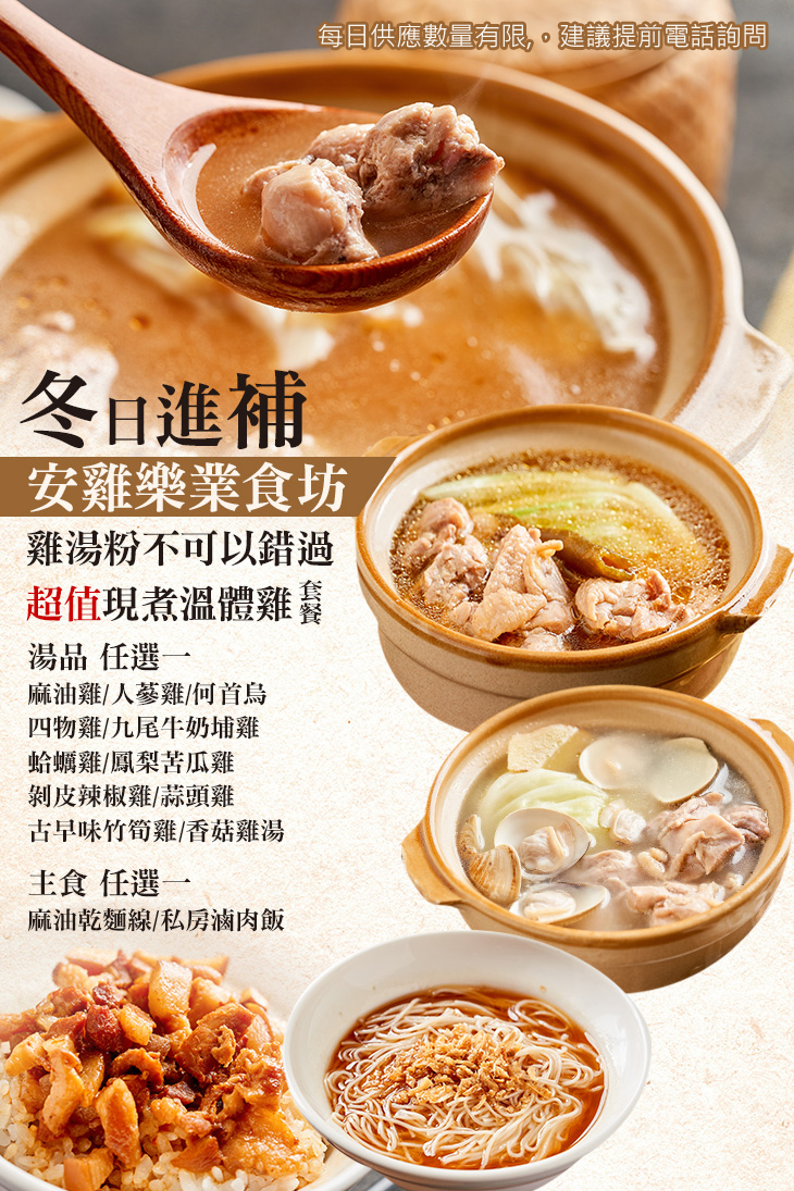 實在用料、用心烹調,用對待家人般的心去製作每一道手上的料理!努力過程不一定會被看見,但最終結果往往讓眾人驚艷!我想這就是【安雞樂業食坊】最大的魅力所在吧!本次與夠麻吉攜手推出超值專屬優惠,有多久沒有吃到媽媽味濃厚的料理啦!是不是和小編我一樣開始有點想家了 ~ 【安雞樂業食坊】的大門隨時為您開啟,期盼透過道道用心、用汗水、用努力製作而來的佳餚,讓您重溫媽媽手作的那份家常美味喲!