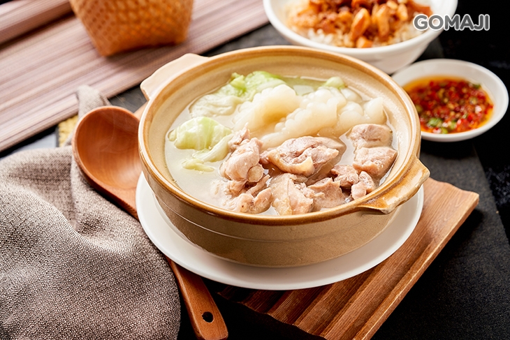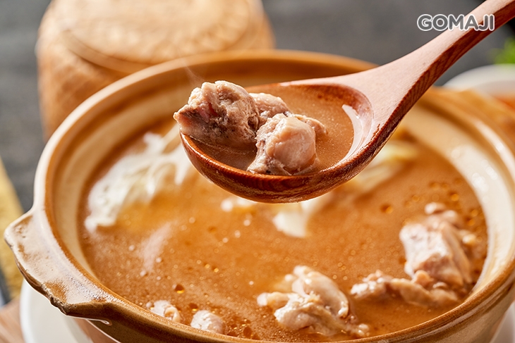採用每日產地直送的新鮮溫體雞來製作湯底,精準掌握火侯與時間,邊煮邊過濾因烹煮流出的雜質及多餘的油汁,迷人香氣伴隨著滾熱鍋底的蒸氣緩緩蔓延開來!從裡到外、整個空氣,都散佈著雞湯的美味,是鮮、是醇,更是用心製作帶來的完美結晶!