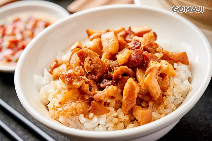將熱騰騰烹煮起鍋的米飯,以俐落的身腳盛進碗底,再淋上一匙匙私房特製滷肉滷汁,瞧那ㄉㄨㄞㄉㄨㄞ肥瘦參半的滷肉,在日光燈的照耀下,表面微微的油光如鑽石一般,閃閃發亮!趁熱品嚐,米飯Q、滷肉鹹香不油膩!兩者拌在一起,佐點些許油潤油汁,美味又涮嘴!單點一份配上人氣湯品,幸福就該如此享受不是?