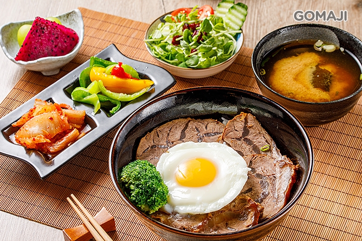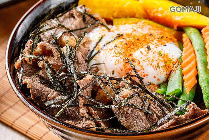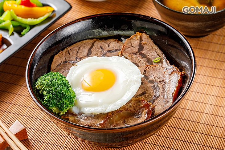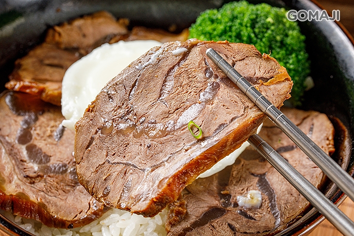 特選牛,以獨門滷汁滷製而成,色香味俱全!筋肉參半好美味!以日式丼飯的方式呈現,將牛肉片片鋪列在米飯上,再加上一顆金黃荷包蛋,澎湃獻上!肉滑嫩、筋Q彈!配上一口白飯與一戳即破的蛋黃,美味更不同凡響!讓人一吃就深深愛上!