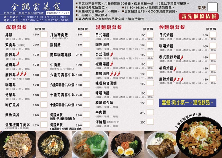 金鶴家美食 MENU (點圖可放大)