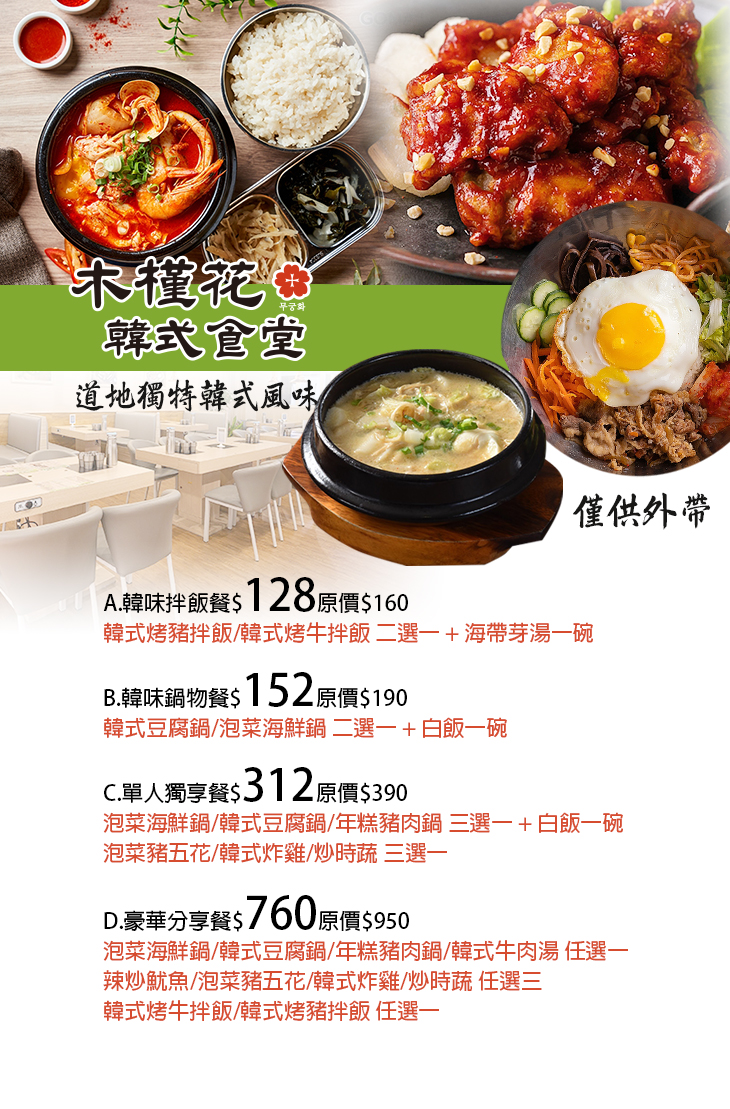 專營道地美味韓式料理的【木槿花韓式食堂】與夠麻吉攜手推出超值專屬優惠啦!