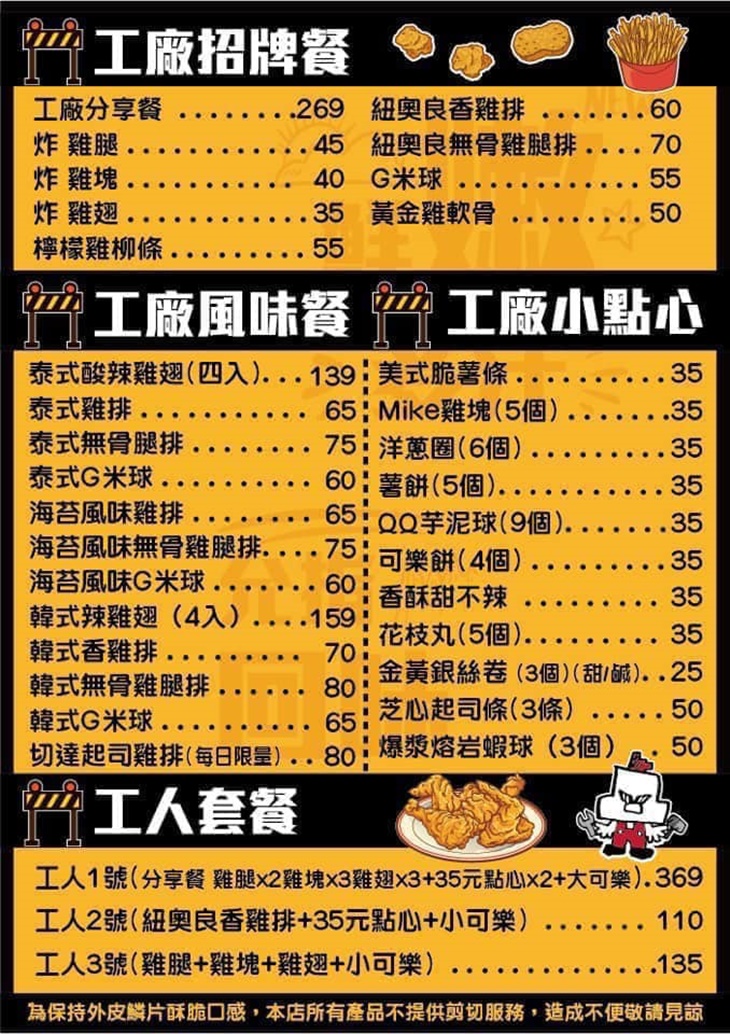 炸雞工廠 MENU