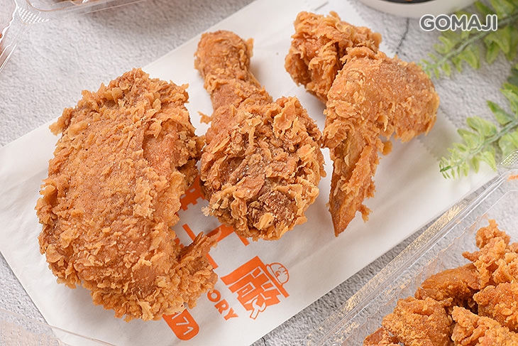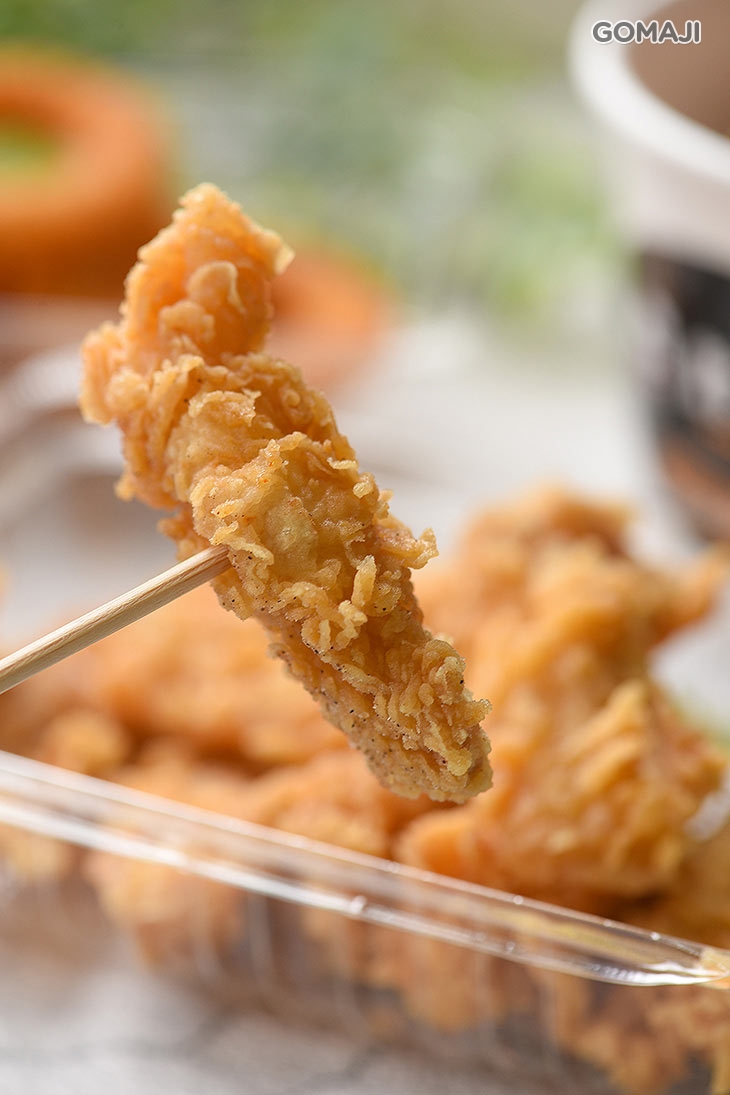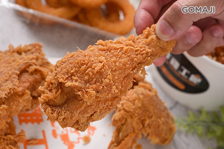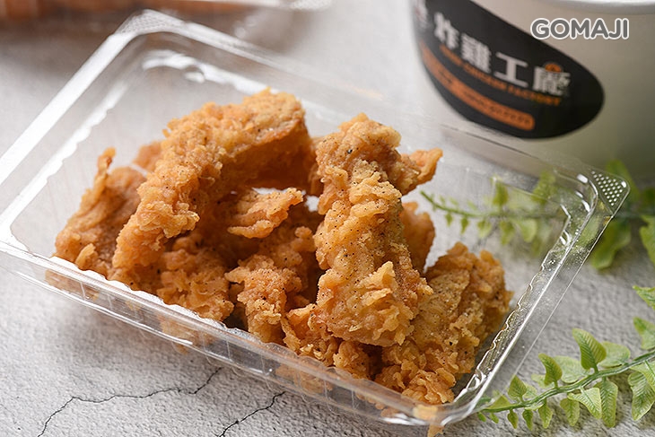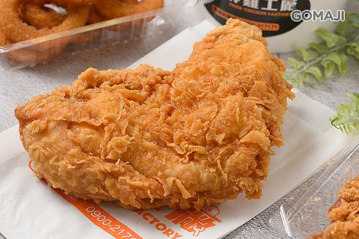一口咬下,薄脆酥香的外皮,鮮嫩肉質立刻流出滿滿肉汁!特選優質品種雞,將軟彈滑透的外皮均勻拍打上薄薄一層麵衣,再入鍋高溫油炸至金黃,誘人的色澤來自店家專業的炸功技術!皮薄肉嫩的口感,讓人越吃越起勁!每一口都意猶未盡!