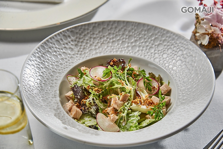 選用優質品種雞製作的雞肉凱撒沙拉,選用時令季節的生菜為基底。鮮豔翠綠的各式生菜佐入雞肉與靈魂凱撒調醬點綴,濃郁而不膩口 ~ 香濃氣息將生菜的爽脆清甜完美襯托出來!簡單而不失精緻美味的開胃菜,為您的佳餚饗宴帶來華麗不失氣質的開場 ~