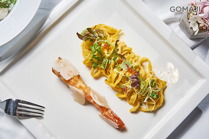| 明蝦海鮮麵 (節瓜花奶油汁.鮭魚卵.帕米伽諾)