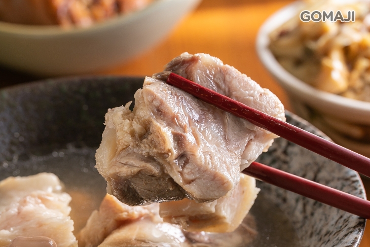 以自家多年來經驗傳承下來的獨門秘方滷汁費時滷製而成!ㄉㄨㄞㄉㄨㄞ肥Q、油潤散發光澤的模樣,讓人看了口水直流啊!入口肉嫩鹹香、皮Q入口即化,滿滿的豐富膠質,讓您吃進嘴裡的不單只是美味,更是營養與幸福。