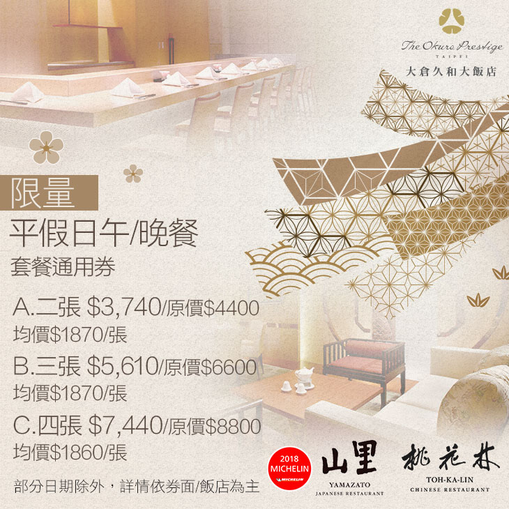 【大倉久和大飯店-桃花林中華料理/山里日本料理】感謝麻吉們熱烈搶購,已全數賣光光。