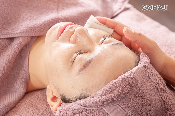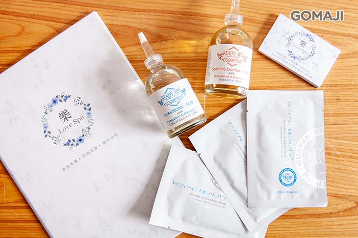 〈溫和卸妝 + 精露濕敷 + 粉刺痘痘清潔(以膚況為主) + 以個人膚況精露柔敏鎮定 + 加強保濕導入 + 高分子水潤保濕面膜(同時頭部釋壓) + 保養品潤澤 + 花草茶〉