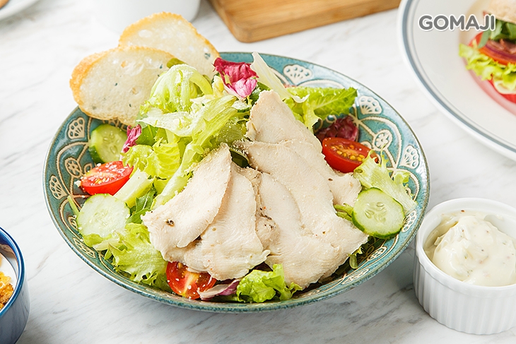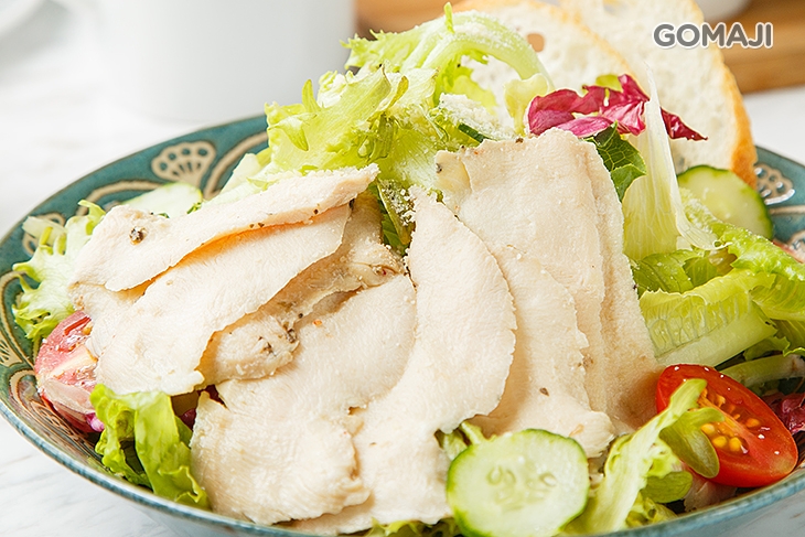 選用卜蜂優質雞胸肉搭配新鮮香草和義式香料,採用低溫烹煮而成,將雞肉的原汁原味緊緊鎖住,有著極度軟嫩的口感,搭配多種生菜一同享受,嚐起來脆甜爽口,是許多女孩非常喜愛的超人氣餐點喔!