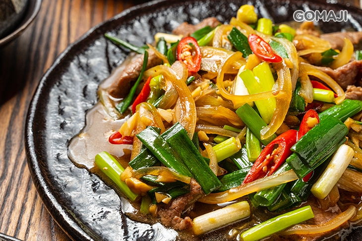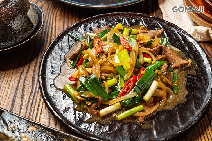嚴選鮮嫩牛,入鍋加入蔥段、洋蔥、辣椒等精選食材調味拌炒,肉汁與醬汁經過高溫烹炒後,鮮美湯汁被牢牢鎖住,趁熱品嚐,肉鮮嫩不柴、醬香味佳,單吃或佐套餐組合一同細細品嚐,人人吃過都讚不絕口、直呼美味啦!