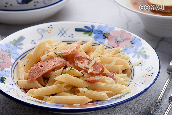 形狀呈空心柱狀,有如筆管般的筆尖麵,是義大利麵的另一種風貌,趁熱品嚐,那比起一般麵條更為有咬勁的口感,在齒唇間綻放溫潤迷人的奶油香氣,鮮嫩肥美的培根與香腸,為整體點綴些許鹹味與肉香,讓這份筆尖麵更有層次,豐盛美味讓人欲罷不能!