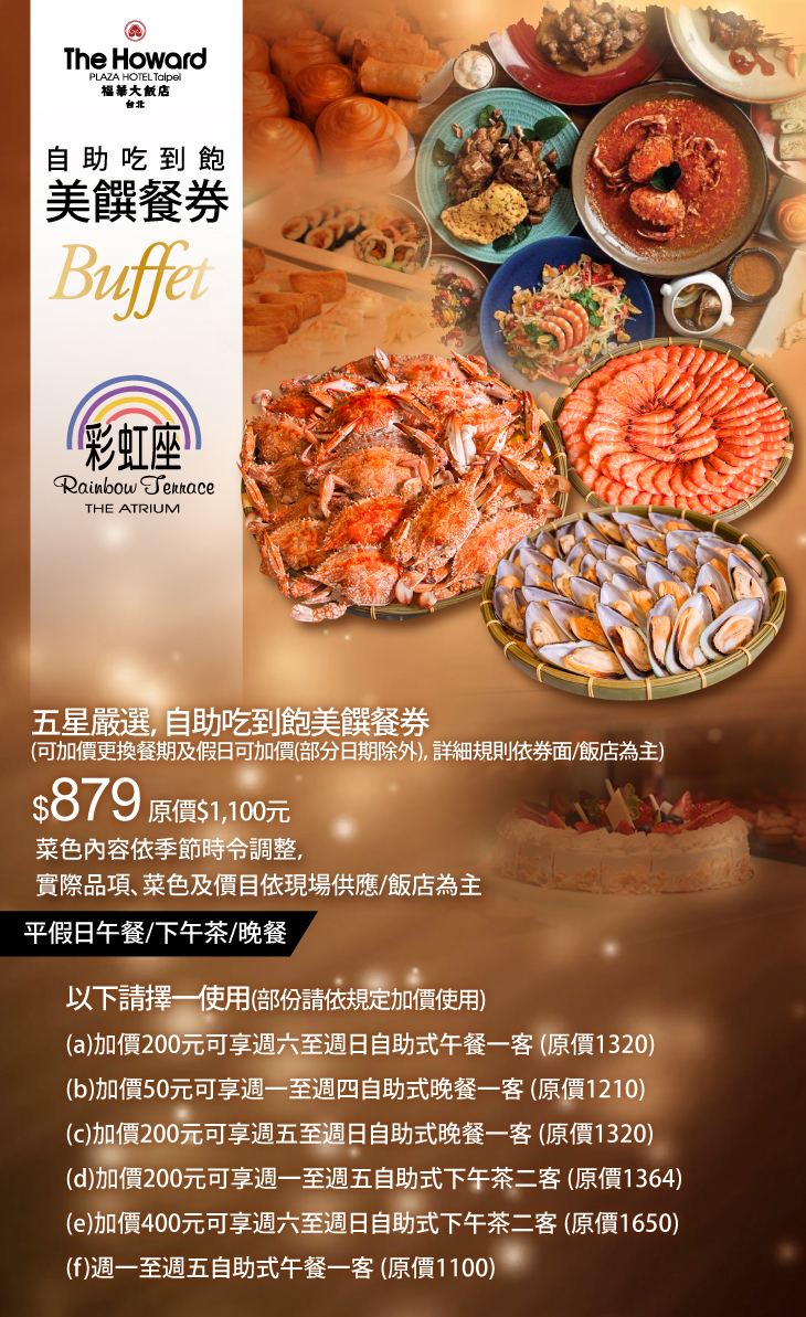 [即期優惠餐券]限量!五星嚴選!限時下殺!自助吃到飽美饌餐券(可加價更換餐期及假日可加價(部分日期除外),詳細規則依券面/飯店為主)