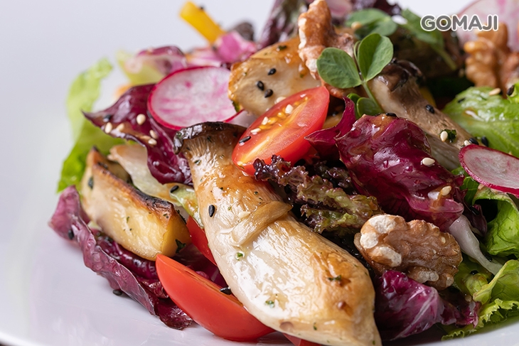 。鮮烤杏鮑菇搭花園沙拉佐薑汁胡麻油醋(全素)
