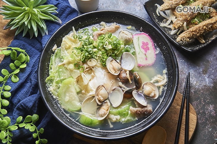 清甜不膩的蛤蜊絲瓜鍋燒,澄澈透亮的湯水,滴滴都是完整萃取了蛤蜊及絲瓜精華的醇香美味!熱騰騰地滑過喉頭,豐盈香氣冉冉而升,直達鼻腔、腦門,再來一口濕潤不爛、鮮嫩入味的絲瓜入口,極致的甘甜饗宴在味蕾展開,條條勁道的麵條,以及豐盛的配菜佐料,則在其中增加了口感上的滿足,讓飢腸轆轆的您我,都能吃得心滿意足!