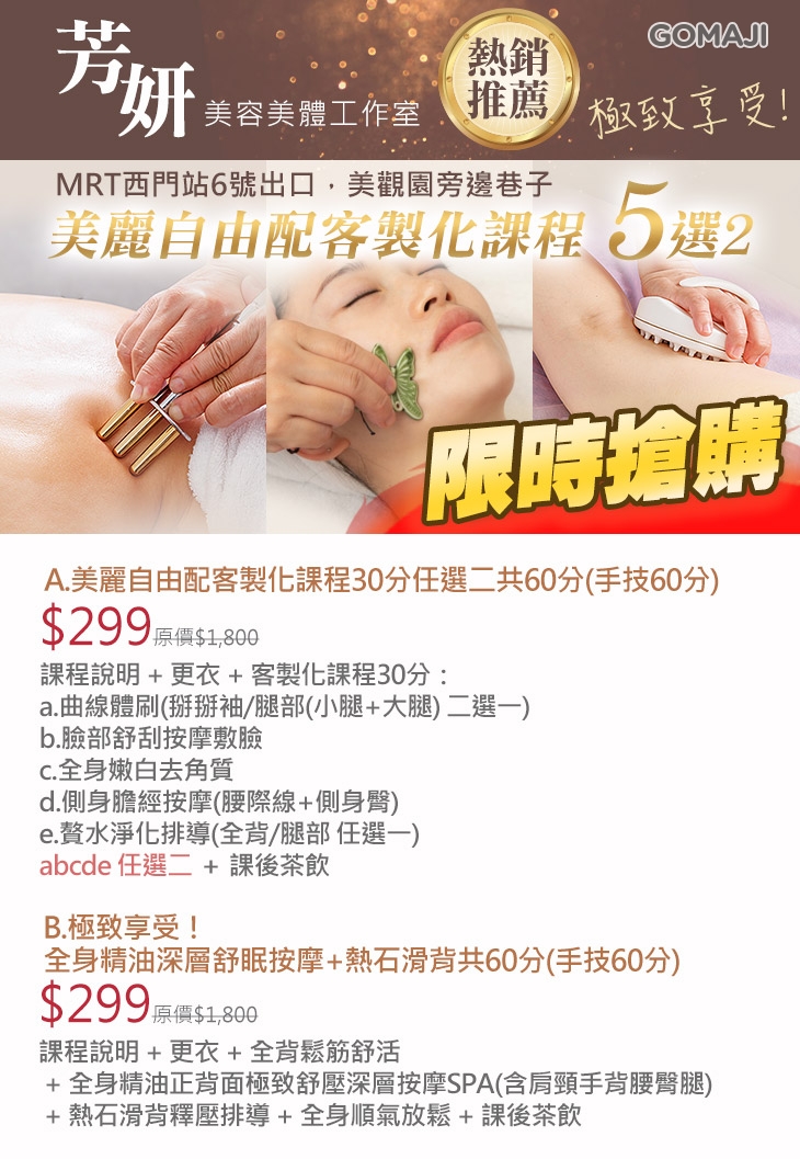 A.美麗自由配客製化課程30分任選二共60分(手技60分)
