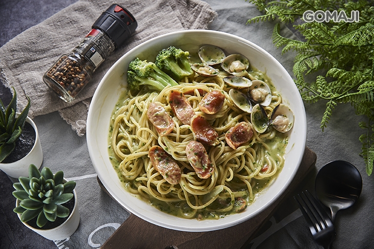 以新鮮羅勒葉製成的濃郁青醬,搭配咕溜彈牙的麵條、噴香香腸與肥美蛤蠣澎湃獻上 ~ 香氣撲鼻啊!入口醬濃味香,料好實在 ~ 蛤蠣肥美多汁的滋味,與青醬融合,美味毫無違和!用餐時刻點上一份搭配套餐組合,幸福一百分!